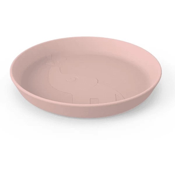 Der praktische Kinderteller in Rosa ist mit einem verspielten Elphee