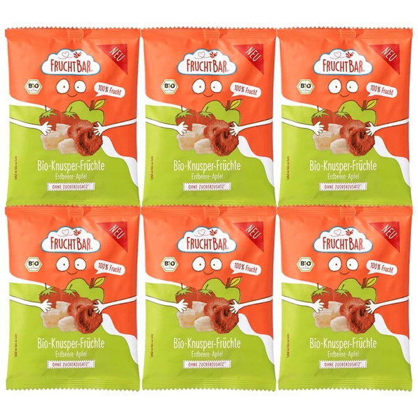 gefriergetrocknete Apfelstücke (60%), gefriergetrocknete Erdbeerscheiben