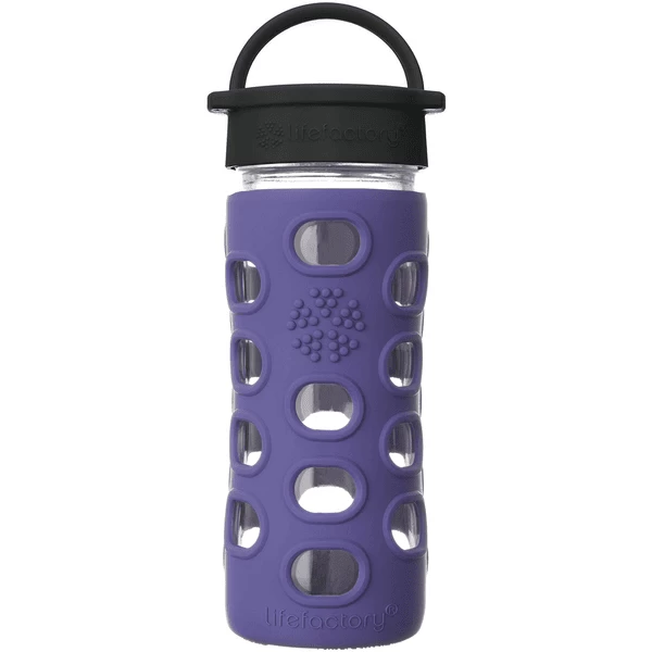 Lifefactory Glasflaschen. In den Flaschen lassen sich Wasser, Eistee, Milch und